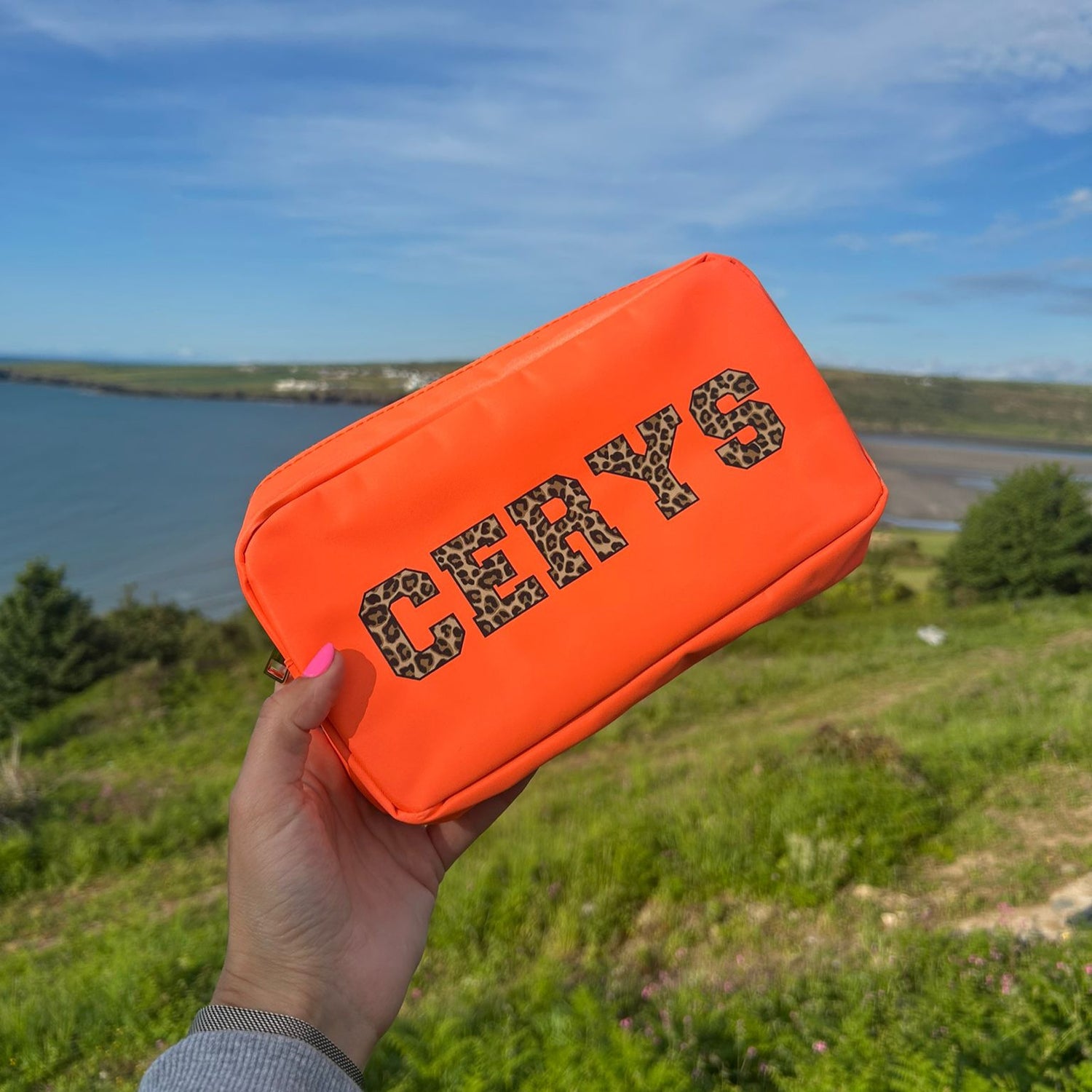 Leopard Print Letter Personalised Bag – Custom Name Travel Pouch