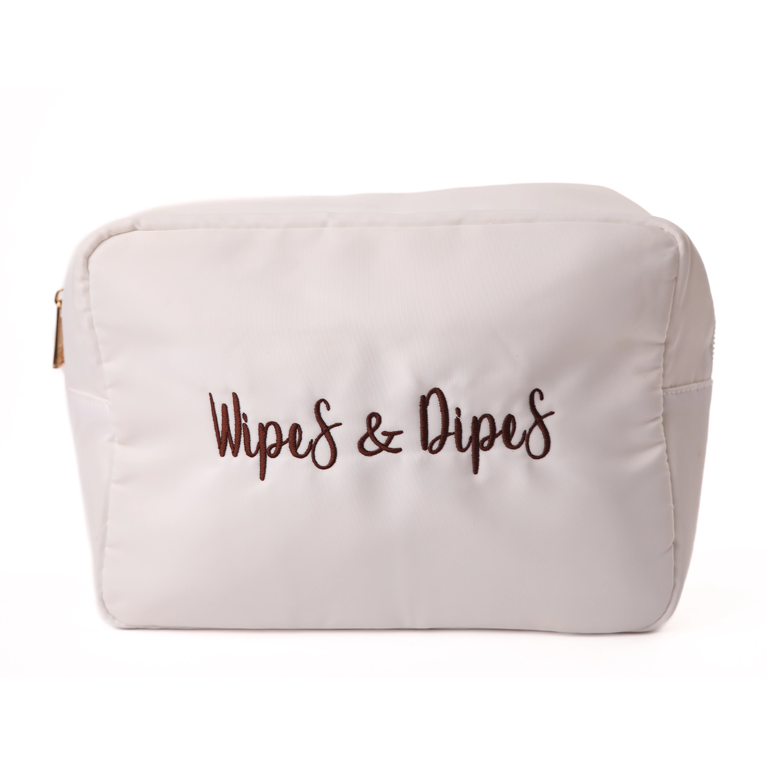 - Personalisation: Embroidered wording “Wipes & Dipes” (not customisable)