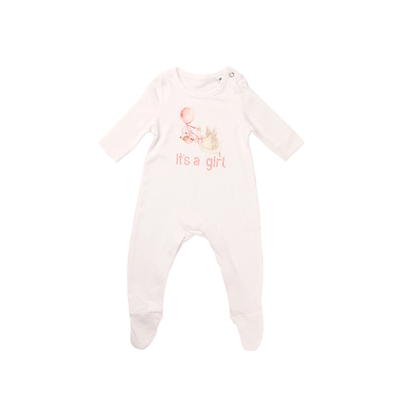 Made from soft white cotton with It’s a Girl printed in pink, this baby grow is simple, timeless and comfortable for your little one to wear.
