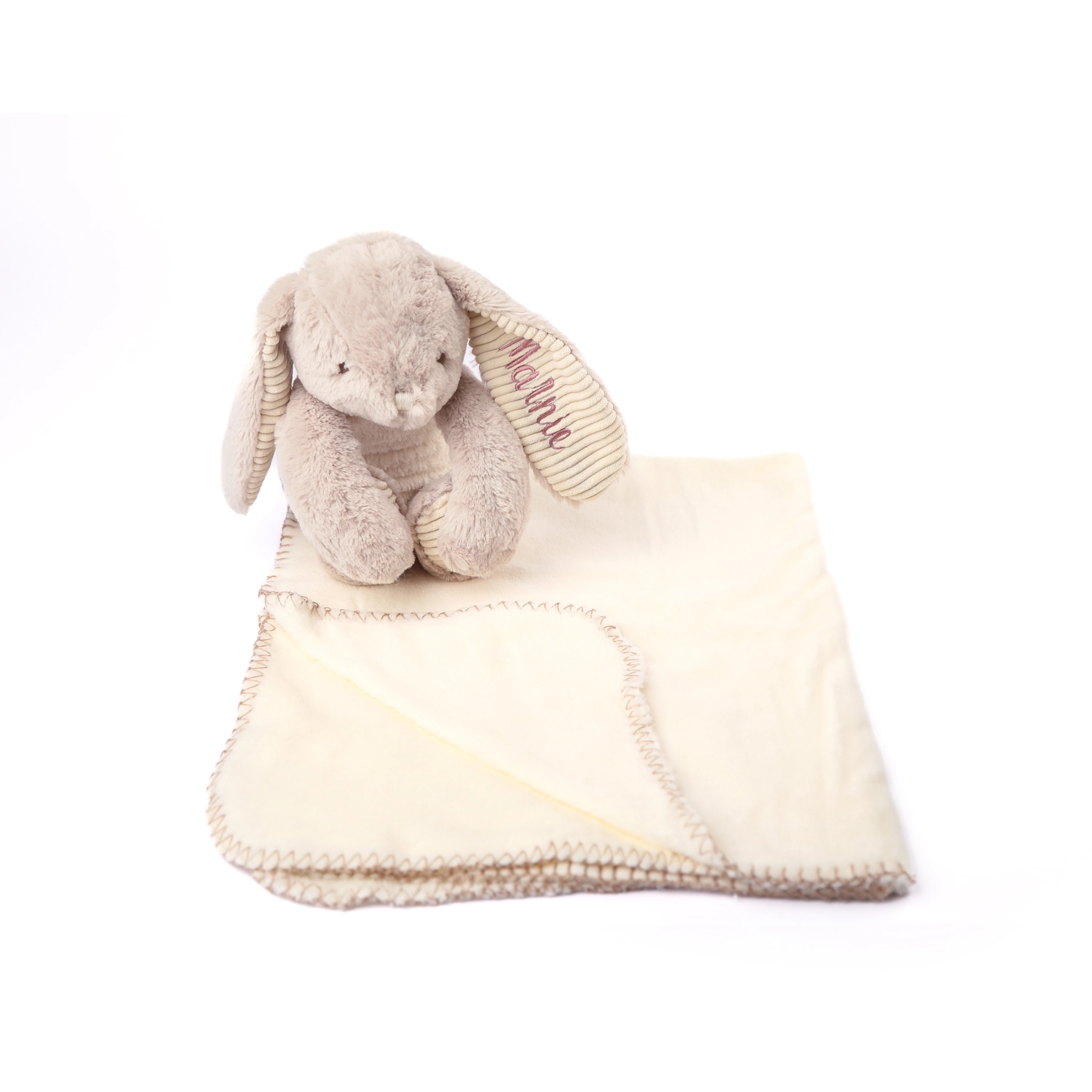 Soft, snuggly, and full of charm, this personalised bunny and blanket set makes a thoughtful gift for expectant parents, baby showers, or newborn arrivals. The bunny becomes a comforting companion, and the blanket offers warmth and love — both beautifully personalised to treasure forever.