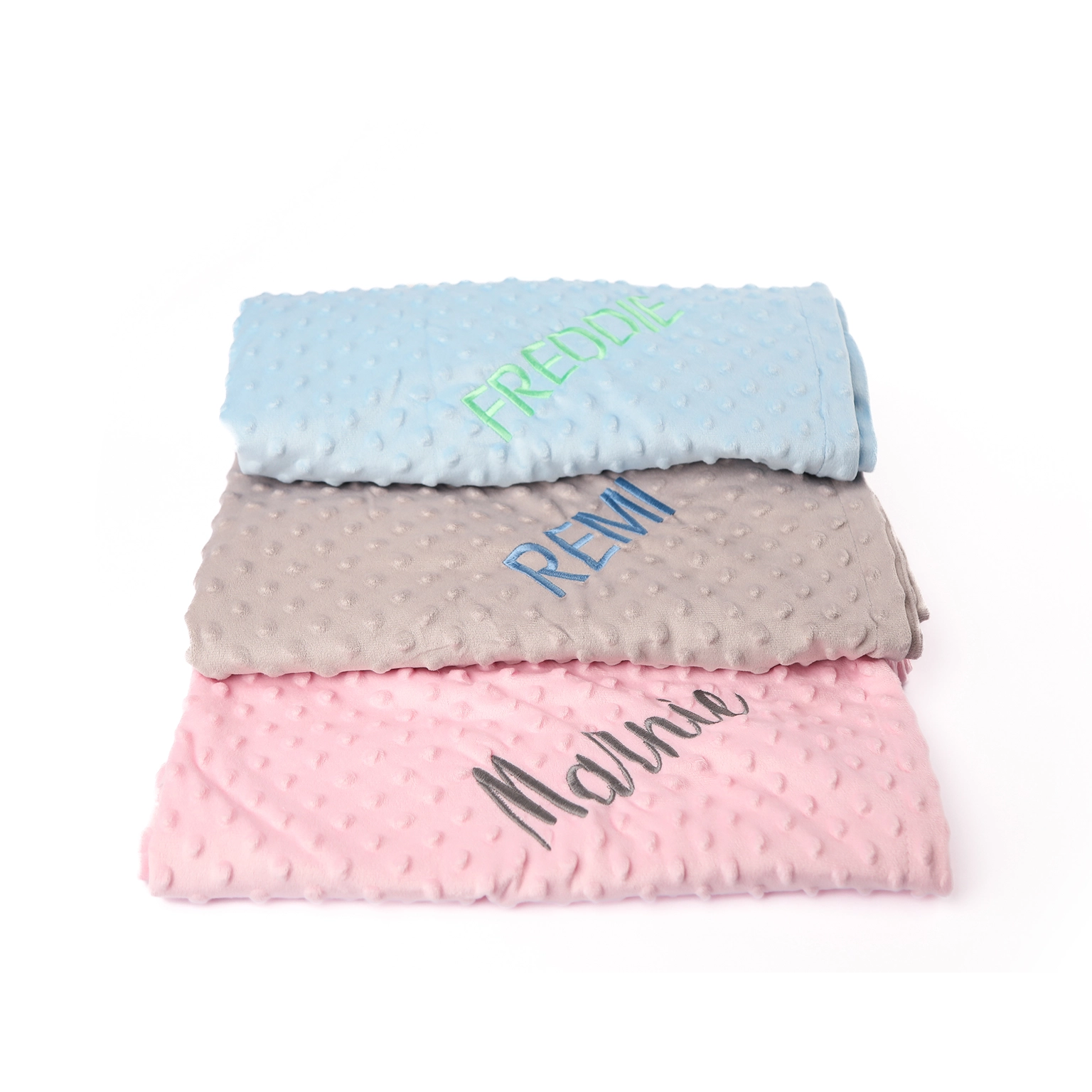 Each blanket is embroidered with a name or “Baby” in your choice of script or block font, making it beautifully unique and personal to you.