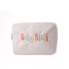Our large personalised embroidered pouches are a stylish and practical way to keep your essentials organised – perfect for use as a makeup bag, travel pouch or baby bag.