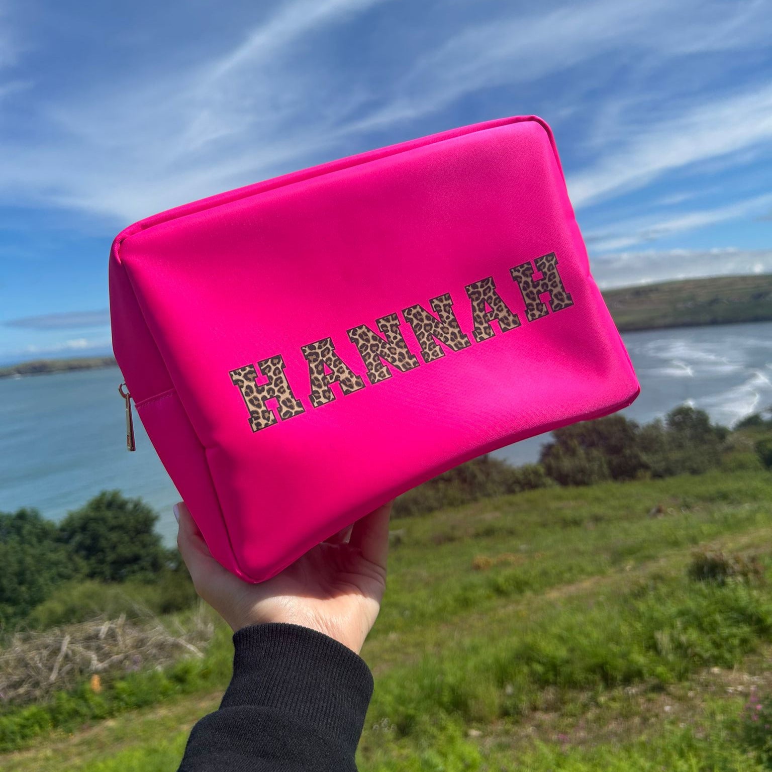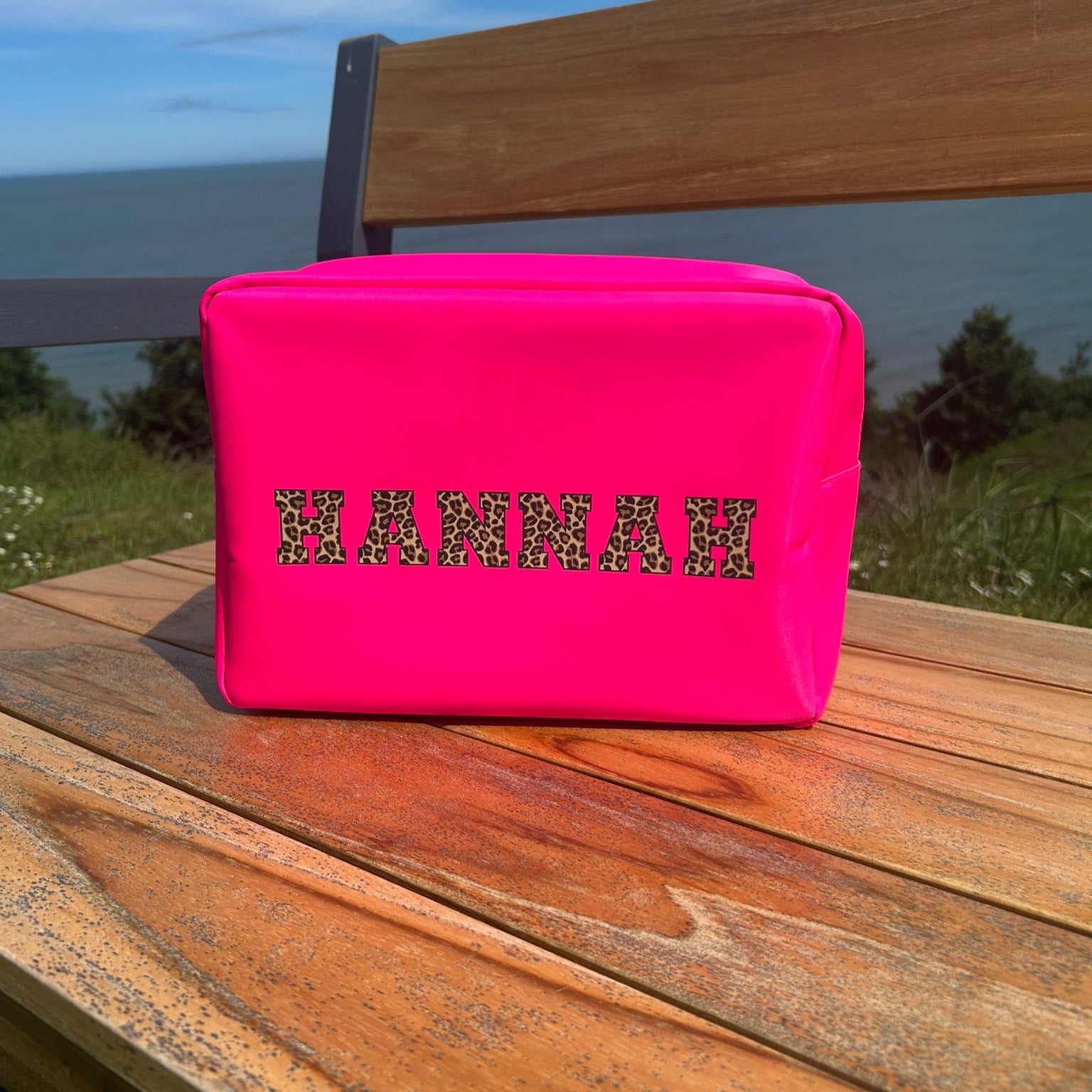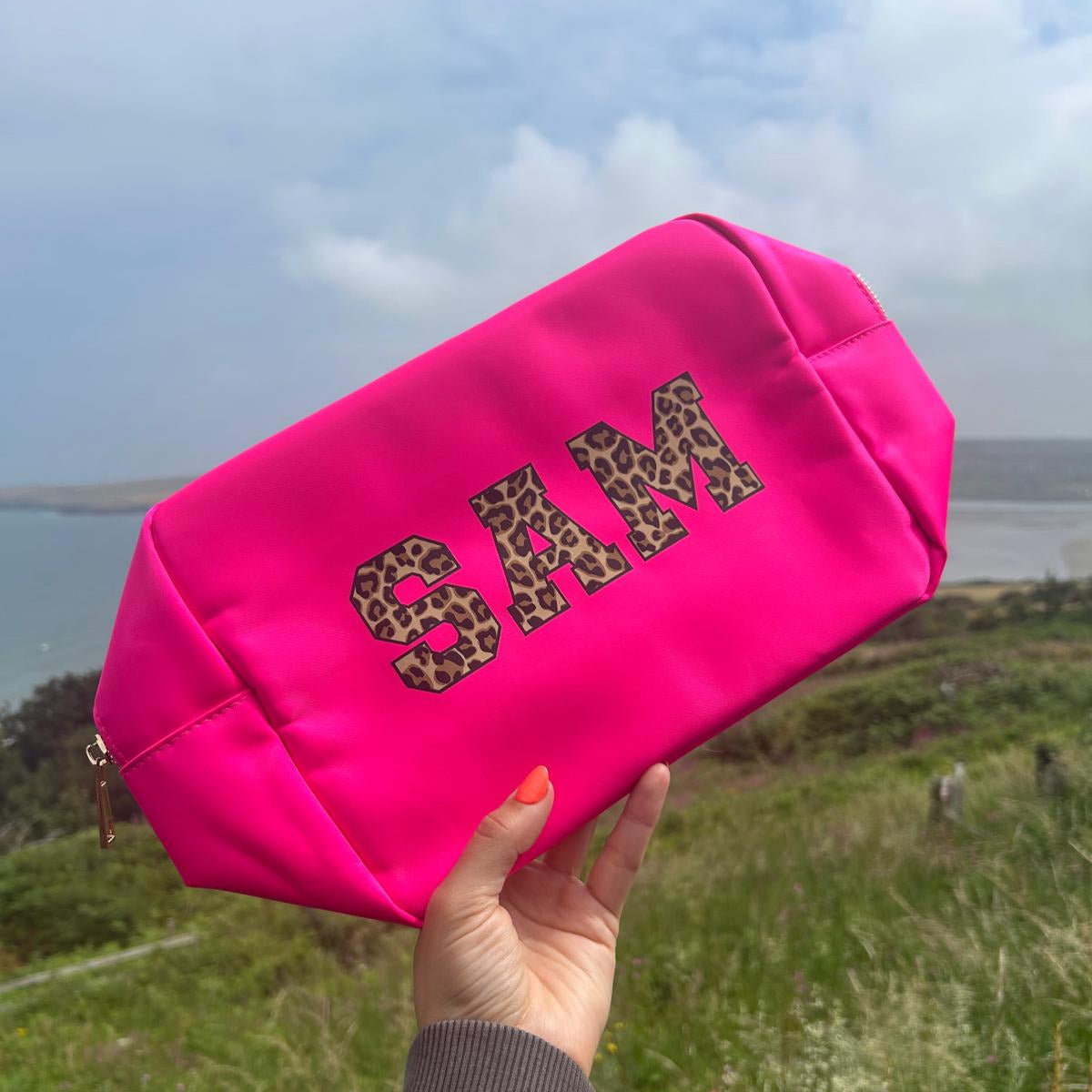 Leopard Print Letter Personalised Bag – Custom Name Travel Pouch