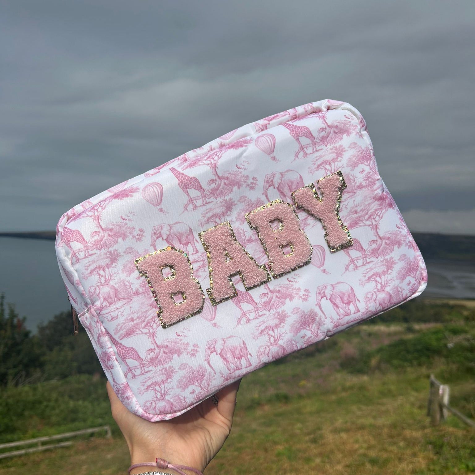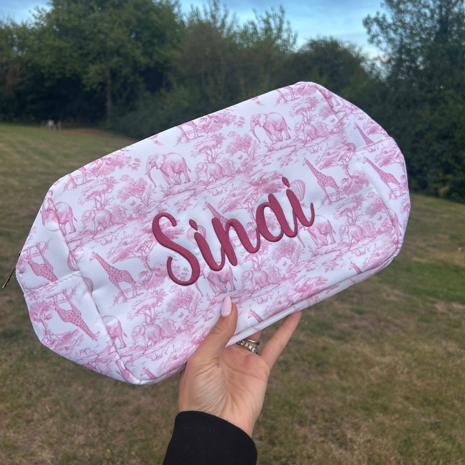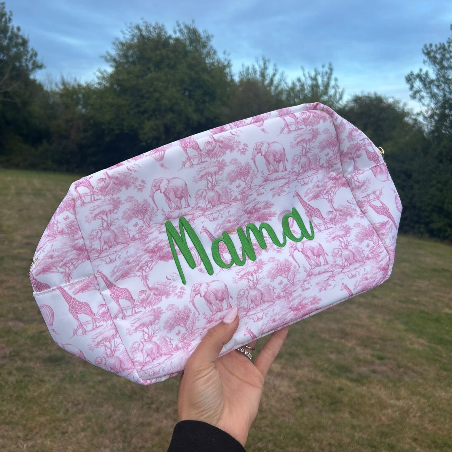 Personalised Safari Print Pouch – Custom Embroidered or Patch Bag for Makeup, Baby & Travel Essentials