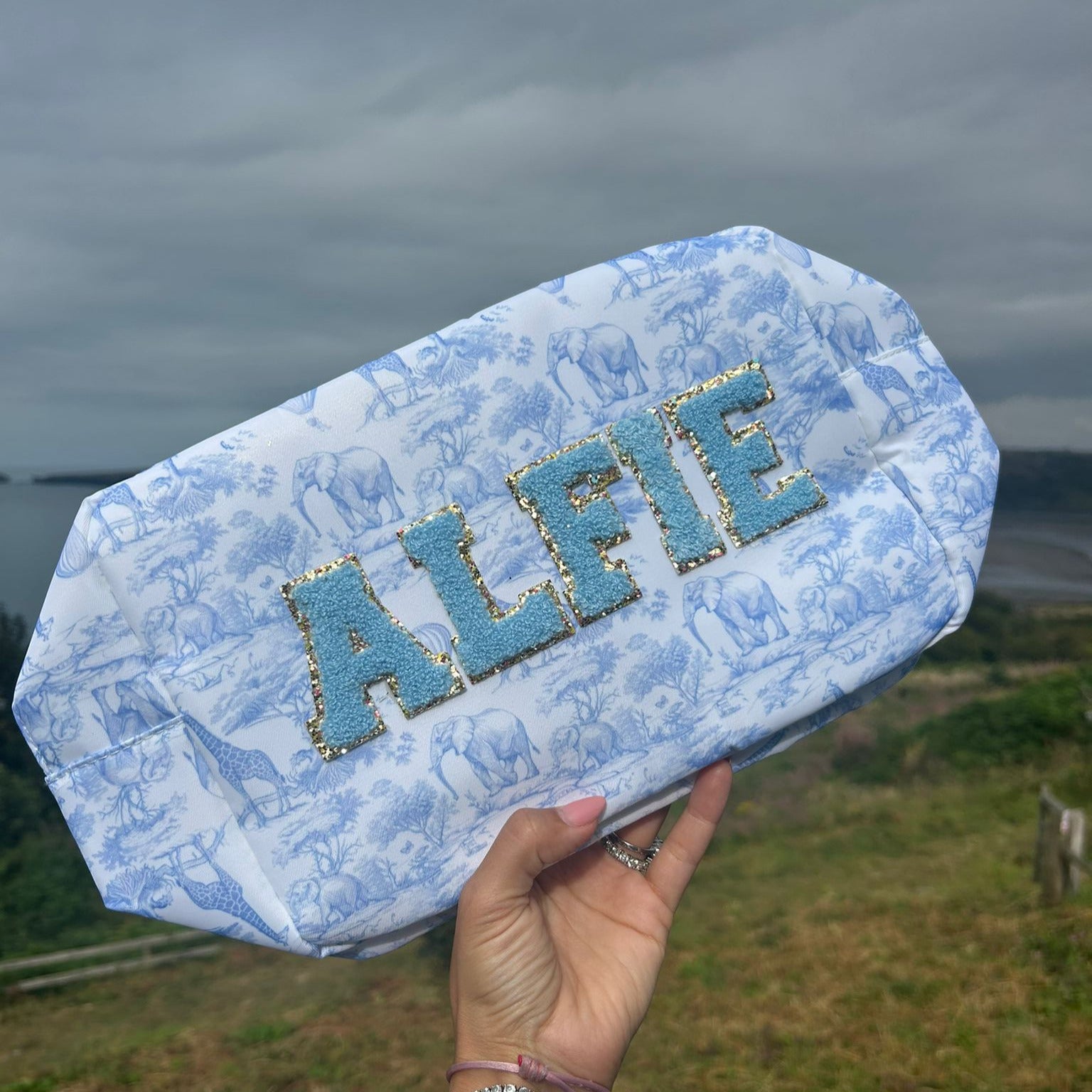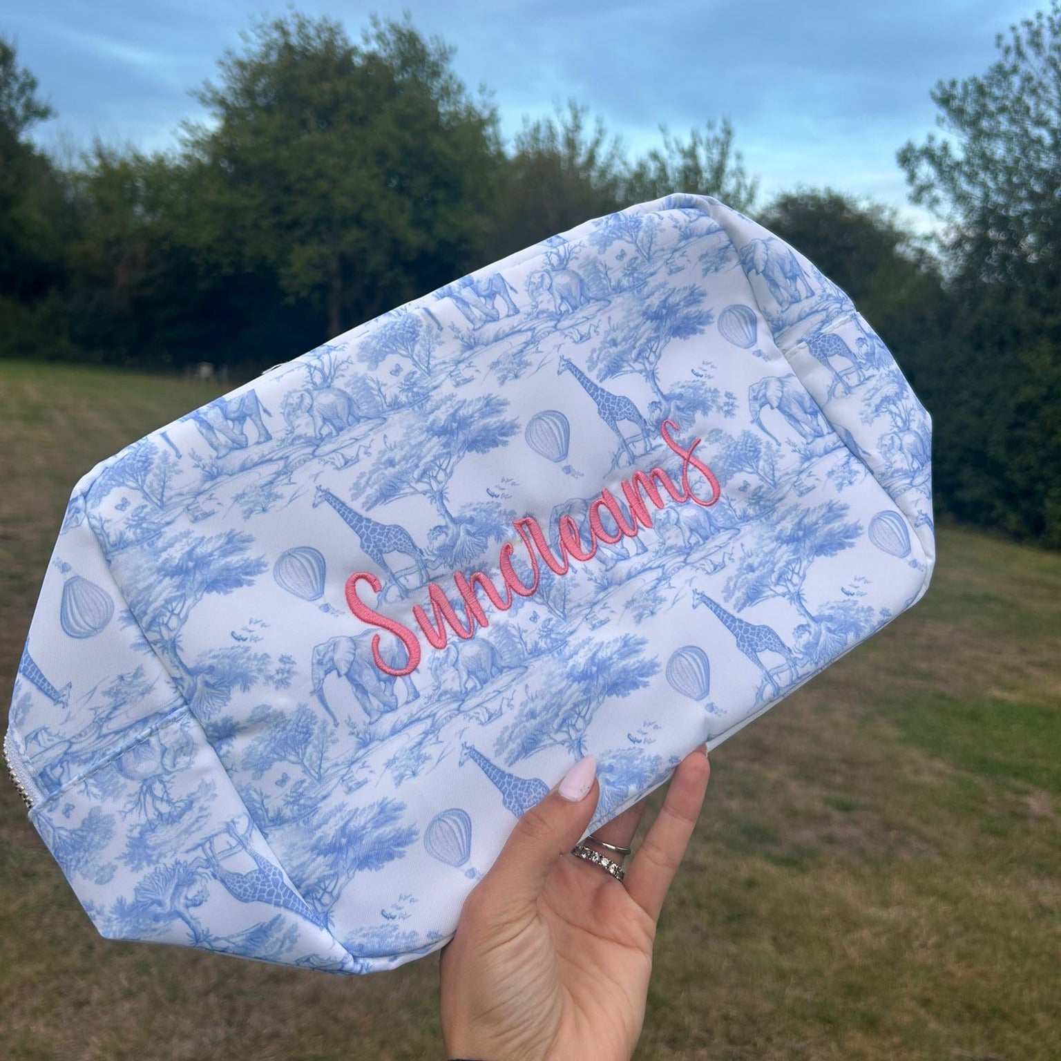 Our Personalised Safari Print Pouch is where style meets practicality – the perfect accessory for travel, organisation, or gifting. Available in baby blue or baby pink, each pouch can be customised with your choice of embroidery (names, initials, or words) or fun patch designs to make it completely unique.